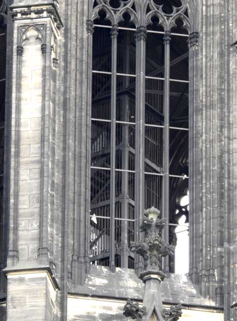 Lighter areas are the result of cleaning ... Note the extensive cleaning taking place on the south elevation ... Twin steeples .... Finials ... Crockets ... Pinnacles ... Belfries