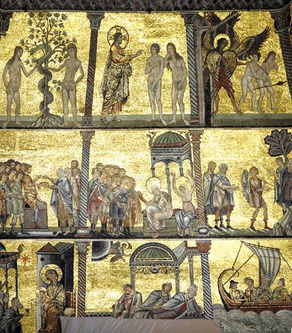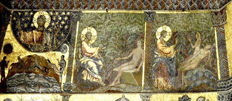 Center: Creation of Adam ... Right: Creation of Eve from Adam's rib