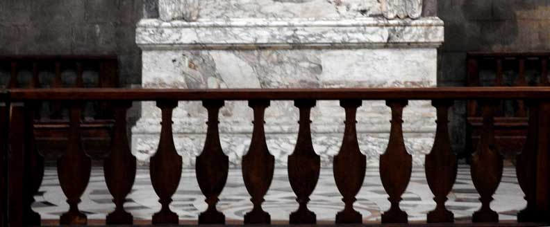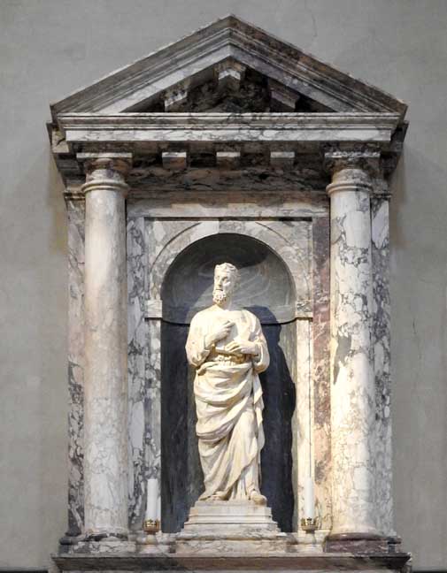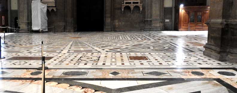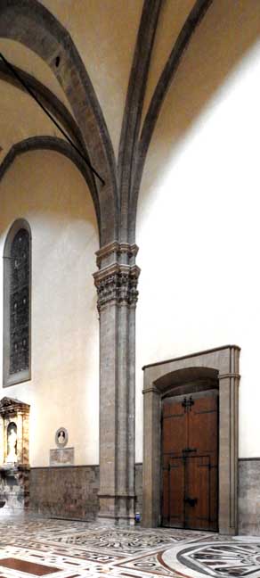 ![]() Plain walls contrast with the intricate, colorful marble floors ![]() Floor designs, created by Baccio d'Agnola and Francesco da Sangallo, were made with many colors of marble |