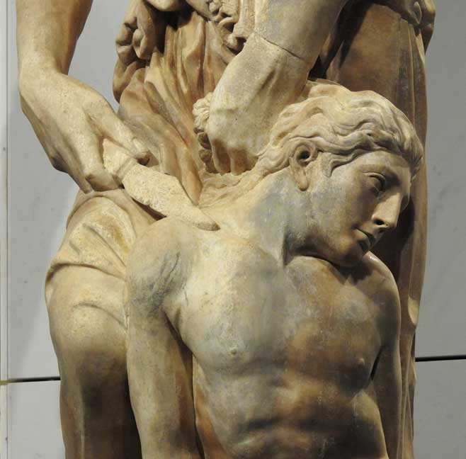 Sacrifice of Isaac ... Renaissance style ... Contrast the realism in this statue to the early Renaissance style above in the Pisano statue