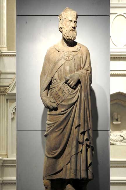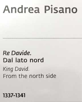 Andrea Pisano ... King David ... Early Renaissance style is more realistic than the chronologically earlier Gothic style, but still somewhat stiff in pose and displaying little emotion