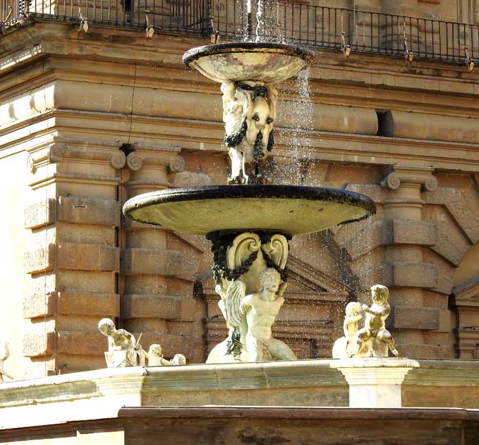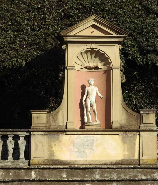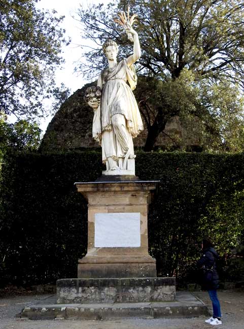 ![]() View of Boboli Gardens from Pitti Palace ![]() View of Boboli Gardens from Pitti Palace ... Note Amphitheater seating ![]() Amphitheatr east elevation ... Detail below: ![]() Amphitheatr east elevation - Detail ![]() Horseshoe-shaped Amphitheatr with an Egyptian obelisk ... In 1631 Giulio Parigi transformed the Amphitheater from garden architecture into masonry architecture with the installation, in the first half of the 18th century, of the Egyptian obelisk originally from Luxor but more recently from the Medici’s Roman collections and the basin from the Baths of Caracalla in Rome ![]() View from just above the Amphitheatr ... Note obelisk, from this view, is in front of the Roman basin ![]() Basin of Neptune and Fountain of Neptune at right ... Other views below: ![]() Basin of Neptune, created in 1777, which houses the Fountain of Neptune (Fontana di Nettuno), called by the Florentines “Fountain of the Fork” (Fontana della Forchetta) ![]() Fountain of Neptune ![]() Fountain of Neptune ![]() Fountain of Neptune with visitor ![]() Basin of Neptune, created in 1777, houses the Fountain of Neptune (Fontana di Nettuno) ![]() Detail below: ![]() ![]() ![]() The Statue of Abundance dominates the whole complex from above ... Detail below: ![]() Statue of Abundance - Detail |