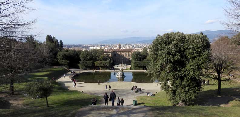 ![]() View of Pitti Palace from Boboli Gardens ![]() View of Pitti Palace frrom Boboli Gardens ... The terrace, including the Artichoke Fountain, is considered part of the Gardens ![]() View of Pitti Palace frrom Boboli Gardens ... The Artichoke Fountain is situated on a terrace of the main floor of the Palace and crowns the courtyard side opposite the facade. Considered part of the Boboli Gardens. ![]() View of Pitti Palace frrom Boboli Gardens Fontana del Carciofo / Artichoke Fountain By Giovan Francesco Susini 1639 -1642 "... 'artichoke' fountain whose large octagonal basin is decorated with numerous statues and crowned by a bronze lily [disappeared]. Because of its shape, the fountain was nicknamed artichoke by the Florentines, as they can sometimes be quite harsh in their judgements." - Visit Florence (online March 2020) ![]() View frrom Boboli Gardens |