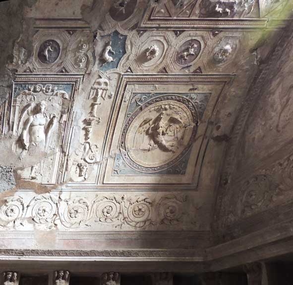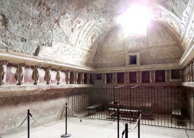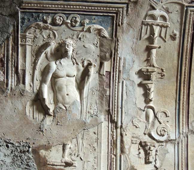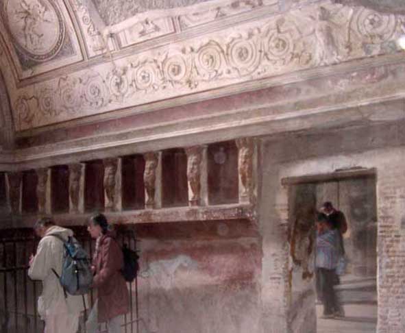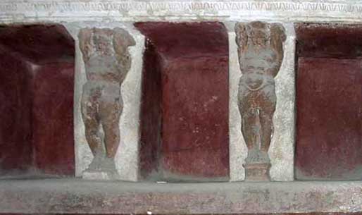 2013 photos, except where noted Men's Tepidarium (tepid bath room) ![]() Note atlantes on walls ![]() 2004 photo Scrolling acathus plants ... Atlantes/Telamons ![]() 2004 photo Atlantes/Telamons ![]() Atlantes/Telamons ![]() ![]() ![]() ![]() ![]() Scrolling acanthus plant |