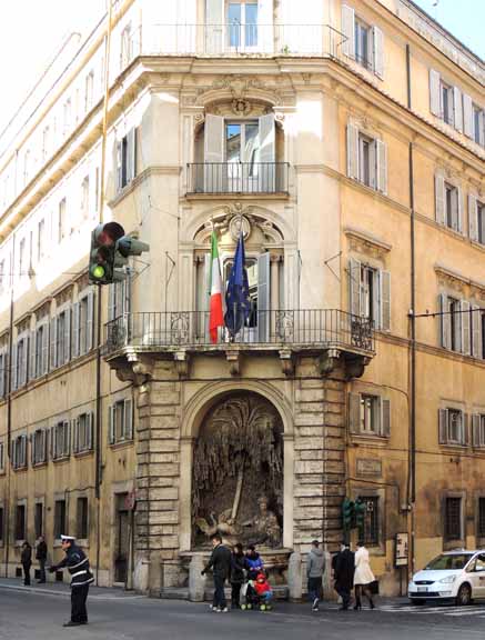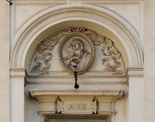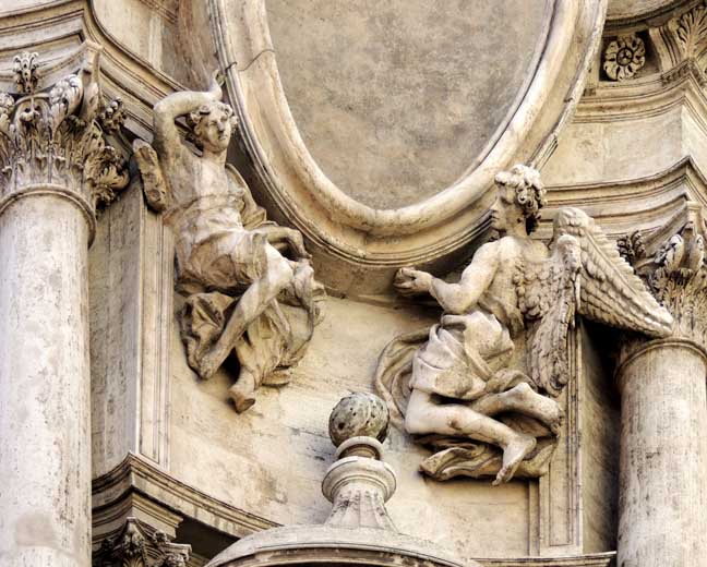 ![]() Tiber ![]() Tiber ![]() Above Tiber fountain: Medallion depicting Mary, the mother of Jesus, with flanking ribbons. "Ave" means "hail," as in "Hail, Mary, full of grace..." ![]() Baroque curves on window surround ![]() Baroque serpentine motion. 3 facades ![]() Two facades. The second, a narrow bay crowned with its own small tower, turns away from the main facade and, following the curve of the street, faces an intersection ![]() Baroque serpentine motion |