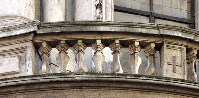 San Carlo alle Quattro Fontane![]() San Carlo entrance. Four tall columns with their unusual capitals on which single acanthus leaves curl around crowns. ![]() San Carlo: Baroque serpentine motion. Four tall columns with their unusual capitals on which single acanthus leaves curl around crowns. ![]() San Carlo. Statues by Antonio Raggi. Center: San Carlo Borromeo, the patron saint of the church. Left and right: St. John of Matha and St. Felix of Valois, the founders of the Trinitarian Order. ![]() San Carlo: Balustrade ![]() San Carlo. Left pavilion: A small bell tower is topped by a pagoda-like roof ![]() San Carlo. |