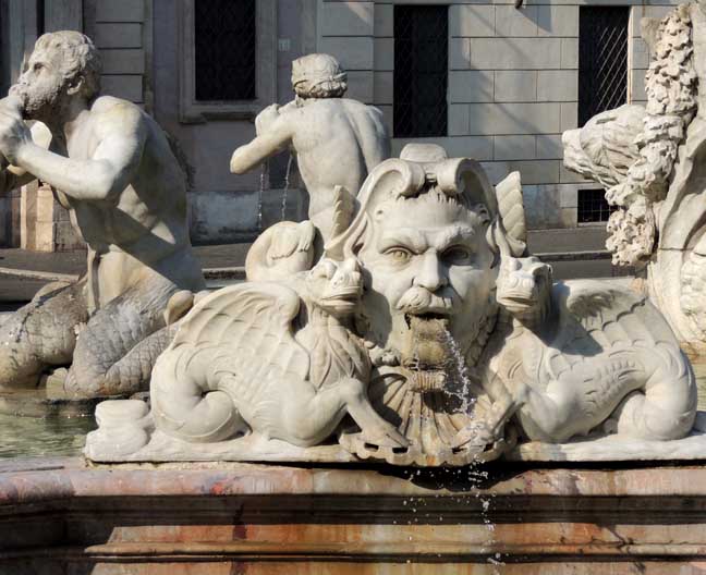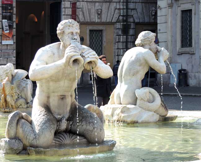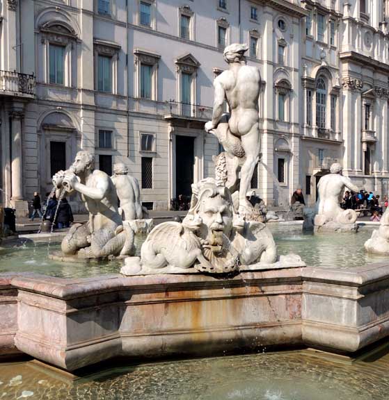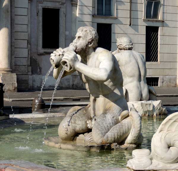 ![]() Piazza Navona is a popular destination for photographers. ![]() Bernini's Moor wrestling a dolphin. ![]() ![]() Detail - The Moor ![]() Two of four tritons in the fountain. Triton was a god of the sea, son