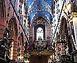 The decoration of the church interior, its paintings and stained glass windows are in a range of styles: from the Gothic to 19th-century Gothic Revival, from the Baroque to Liberty (Italian Art Nouveau).