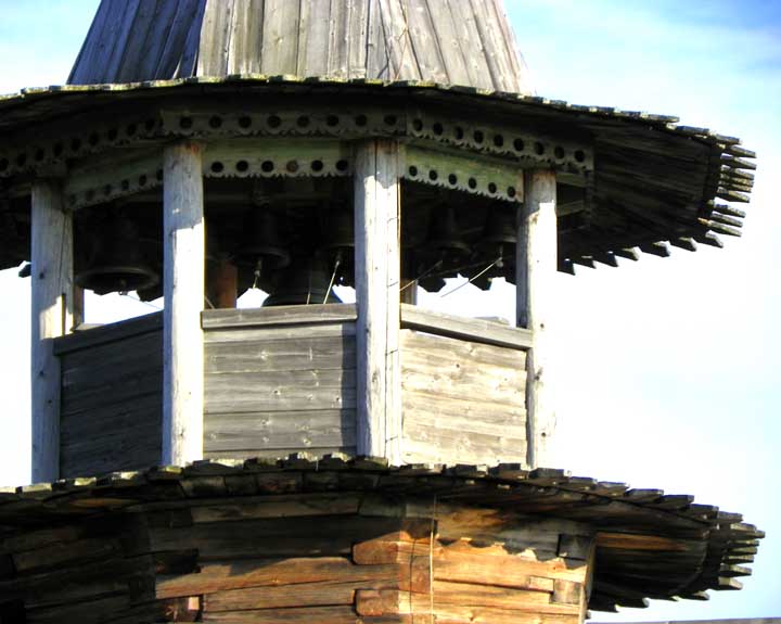 Chapel of the Archangel Michael ![]() Bell tower on Chapel of the Archangel Michael mimics the Pogost bell tower (far left in photo) ![]() Belfry on Chapel of the Archangel Michael ![]() |