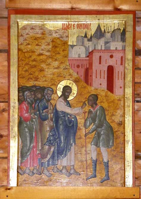 ![]() Note floor taper stand and partially shown icon at far right. See next two illustrations: ![]() Floor taper stand with tapers. ![]() Jesus Heals a Blind Man |