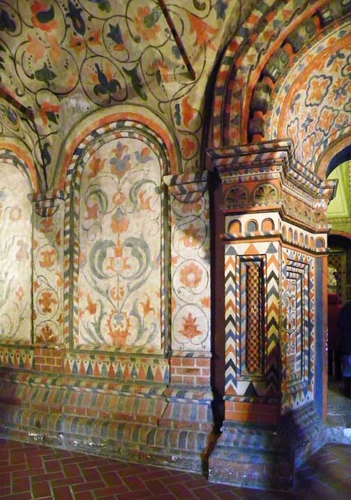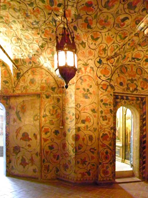 Small dimly lit chapels and maze-like corridors fill the inside of the church, and the walls are covered with delicate floral designs in subdued pastel colors dating from the 17th century. ![]() ![]() ![]() ![]() Ceiling ![]() Brass chandelier |