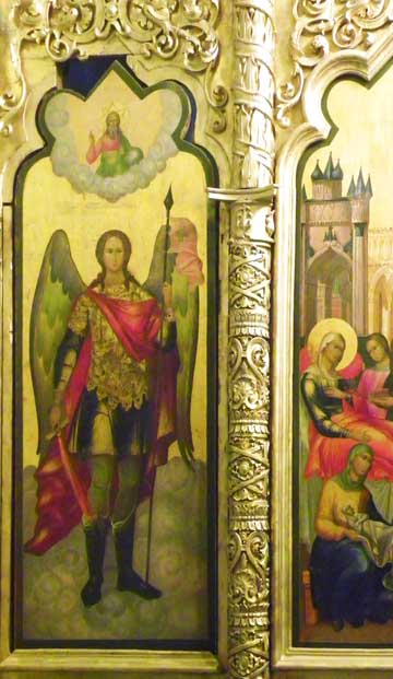 Another Iconostasis ![]() Three large lower icons illustrated below: ![]() Archangel Michael ![]() Archangel Michael - detail ![]() Birth of Mary, the future Mother of Jesus. ![]() Nativity |