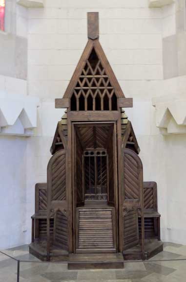 2015 Photos![]() "Gaudí conceived the atmosphere of the interior of the church as a leafy wood... He sought seclusion and inner peace, the light filtered through the leaves, the diaphanous space between the trunks." - Temple Expiatori Sagrada Familia (online March 2015) ![]() ![]() ![]() ![]() ![]() Bosses ![]() ![]() Tree knots imitated ![]() Symbol of Mark the Evangelist on one of the four pendentivies supporting the cupola ![]() ![]() Three details below: ![]() St. Joseph ![]() ![]() ![]() ![]() Stained glass windows copa ![]() ![]() ![]() ![]() ![]() Copacabana is the main Bolivian town on the shore of Lake Titicaca. The town has a large 16th-century shrine, the Basilica of Our Lady of Copacabana. Our Lady of Copacabana is the patron saint of Bolivia ![]() ![]() ![]() Confessional ![]() ![]() |