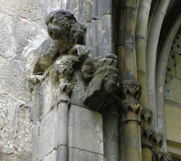 Exterior ![]() For a photo of the exterior wihout distracting foliage, see Catholic Barcelona: Santa Anna ![]() Gothic compound arch and Gothic columns ![]() Santa Anna: Saint Ann and her daughter Mary ![]() Lamb of God and ? ![]() ![]() Buttress