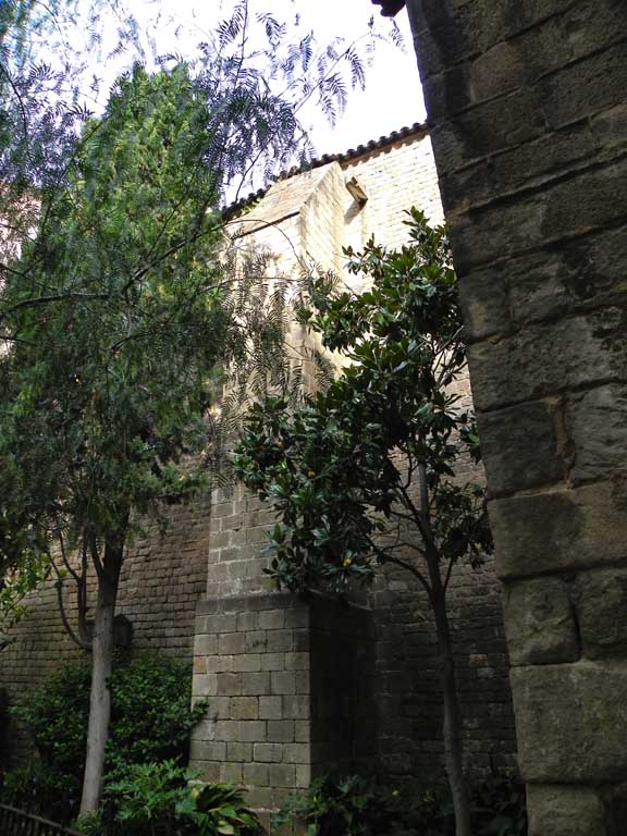 "The cloister and chapter-house, both of which still remain, were built in the 15th C.; many other parts from the same period were pulled down in the 19th C. Originally Romanesque in style, the church has a cruciform ground plan and rectangular choir." - PlanetWare, Barcelona: Santa Anna