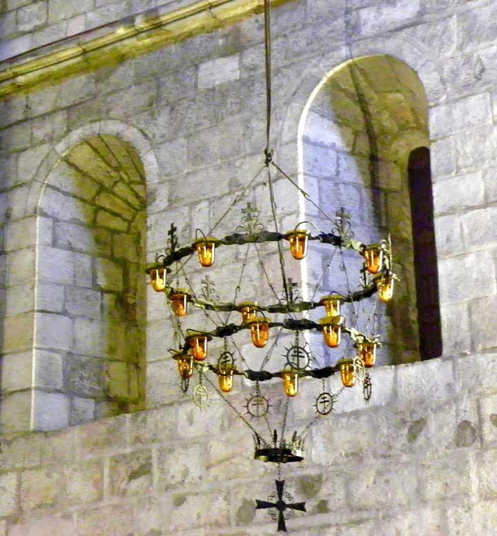 ![]() Romanesque rounded windows in the nave Kerosene chandelier