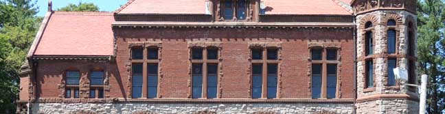 ![]() Source: History of Easton, Mass., by W. L. Chaffin, 1886, pp. 687-688 (online June 2013) ![]() Right: Ames Free Library. Both buildings designed by Richardson in his Richardsonian Romanesque style. ![]() Facade/east elevation. The massive structure