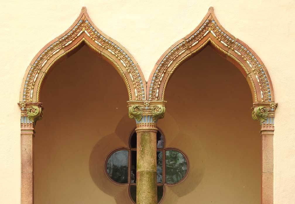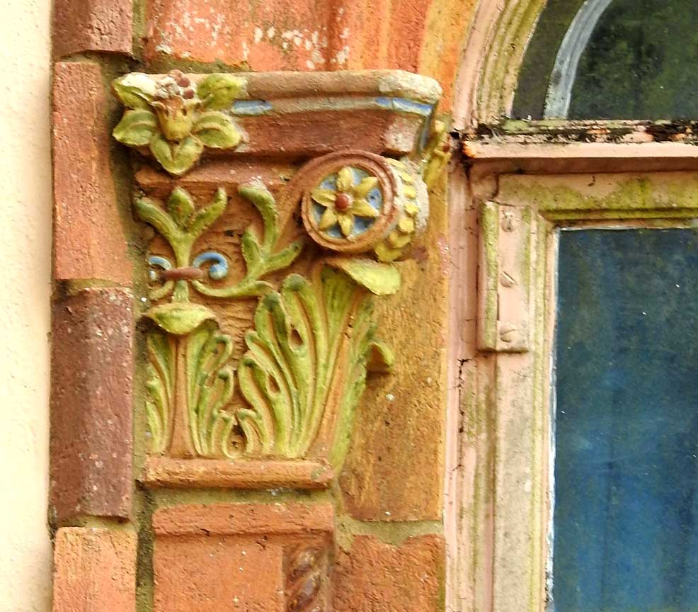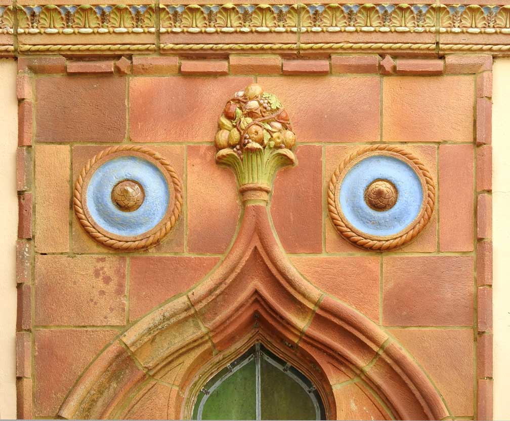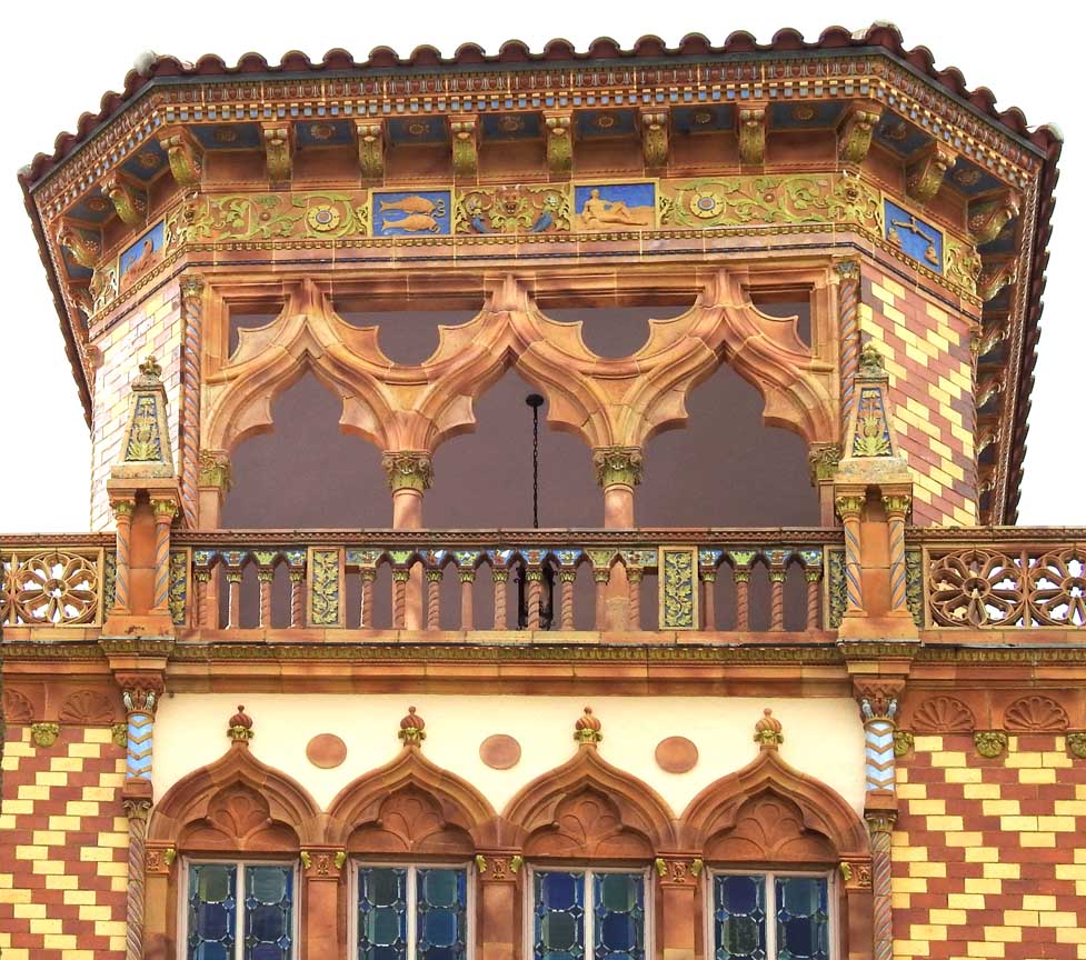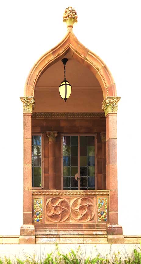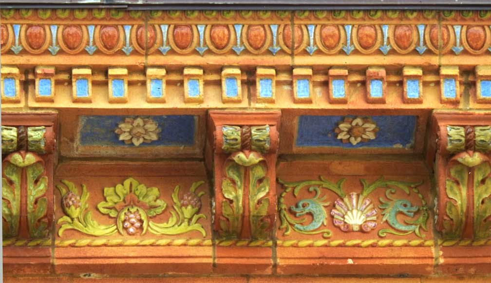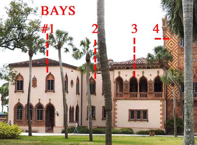 Bay #1 ![]() Bay ![]() Bay #1 Ogee/Venetian arched windows Three details below: ![]() Bay #1 Venetian/ogee arches Stained glass quatrefoil Note glazed terra cotta details in arches, detailed below: ![]() Rope molding Bead-and-reel Egg-and-dart ![]() Bay #1 Ogee/Venetian arch Top finial ![]() Bay #1 Glazed terra cotta Quatrefoils Cornucopia |