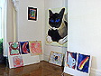Pat Jacoby Harris in front of a recent painting of her cat |