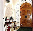 A magnificent center staircase, the dramatic focus of the interior, dominates the center hall. A single broad flight of stairs divides into a double flight at the landing. |