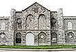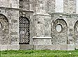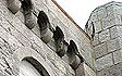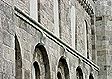 Corbel table along the crest of the wings. Note ashlar dressing with thin mortar joints |