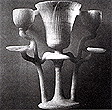 Alabaster lamp with cups carved into the shape of open lotus buds. Each cup held oil and a wick. |