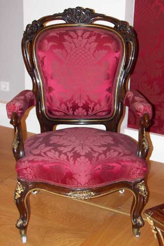 Palisander, carved, gilt-bronze mounts, upholstery renewed