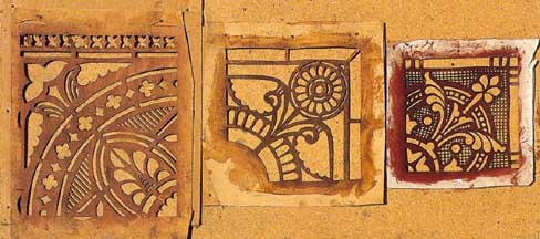 Silkscreen is an example of stencil technique.The second illustration near the top of the page is that of three c. 1890s stencils that were used on stained glass windows to produce grisaille patterns.