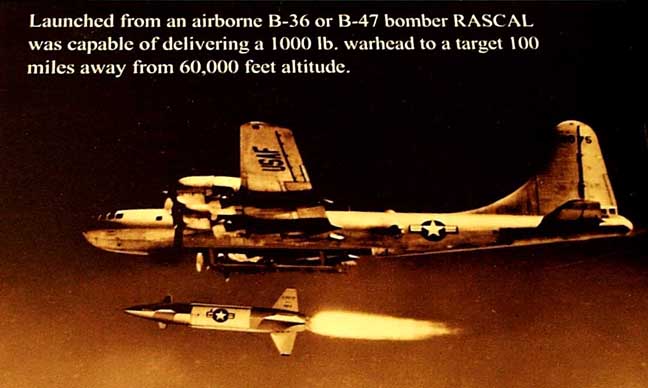 GAM-63 "Rascal" Rocket was one of the first air to surface missiles developed in the early 1950s. (Plane in illustration is a B-29.)