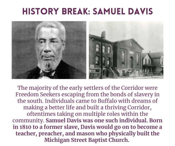 Fifty-eight blacks lived in Buffalo in 1828, working as servants, barbers, laborers and boat stewards. They settled around Michigan and William streets and in 1831 founded Bethel African Methodist Episcopal Church.