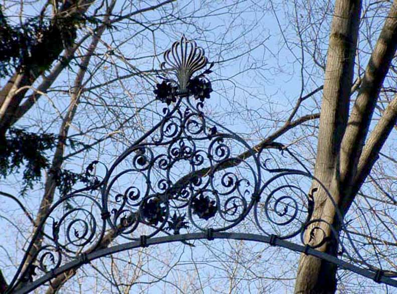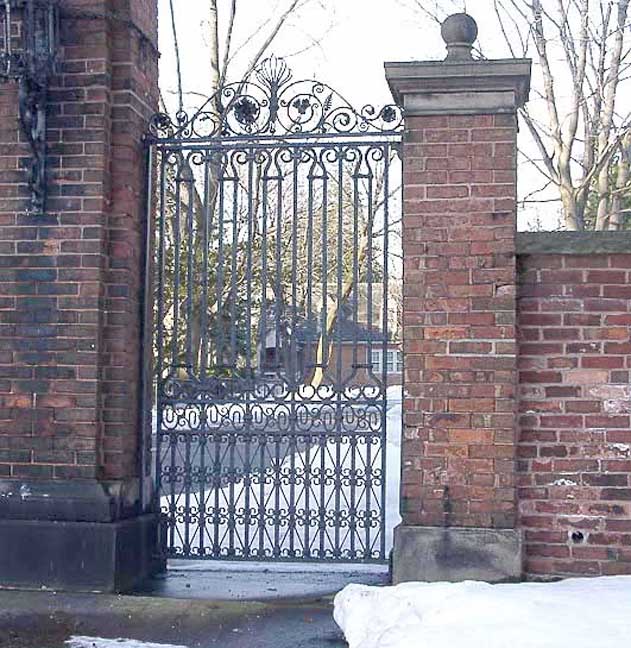2010 photo Remaining gate of the Albright Estate on W. Ferry Street Crowning anthemion C scrolls
