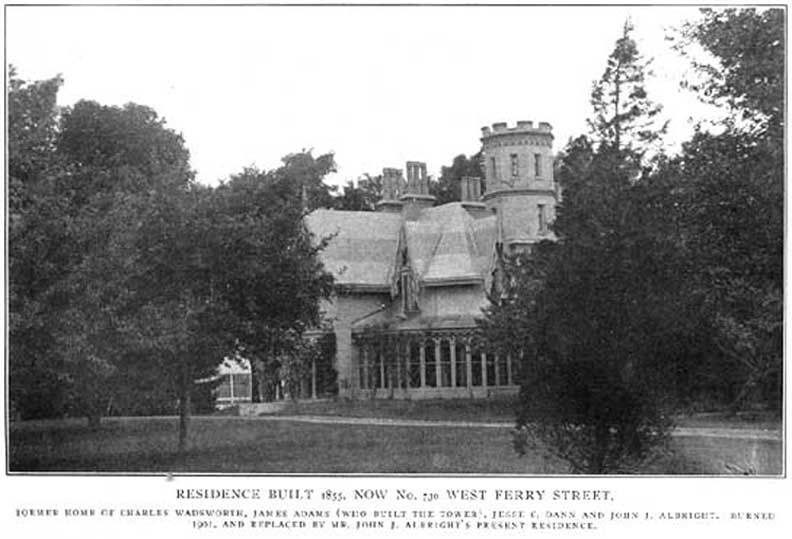 - In 1887, Albright acquired the Wadsworths House at 730 West Ferry. In 1890 Albright hired the Olmsted Firm to design the grounds. After the house was destroyed by fire in 1901, he hired Green & Wicks to design a new Tudor style home. Olmsted's work for Albright continued until 1907