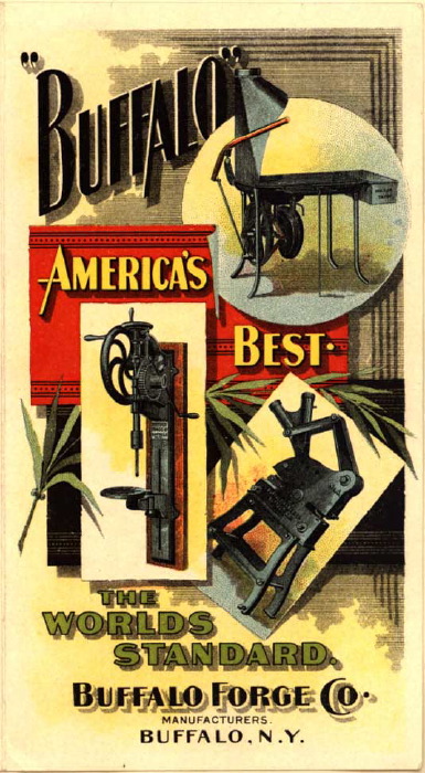 Buffalo Forge as ordered. In 1880 the company moved from its original location at the corner of Washington and Perry Streets to its present site at Mortimer and Broadway. As the business expanded, it absorbed the plants of the George L. Squier Manufacturing Company - in 1902 - and the Buffalo Steam Pump Company in 1904. - Robert Holder, The Beginnings of Buffalo Industry (online Sept. 2020) |