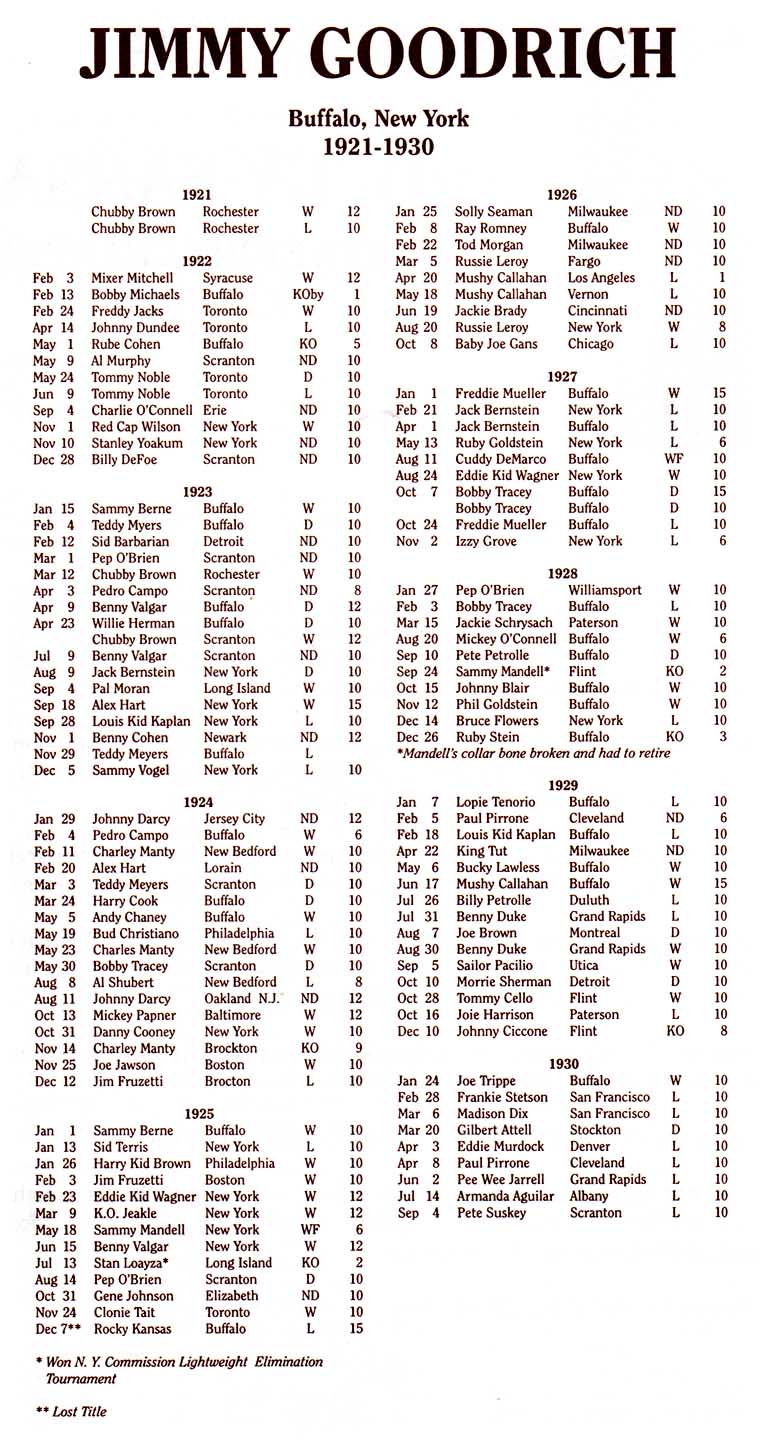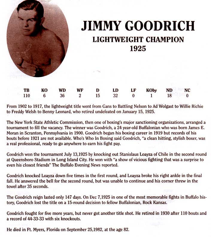 Boxing in Buffalo, NY - Table of Contents ............... Boxing Insider Buffalo Veterans Boxers Association 34th Annual Dinner Banquet Program, May 10, 1997 Jimmy Goodrich 1900-1982