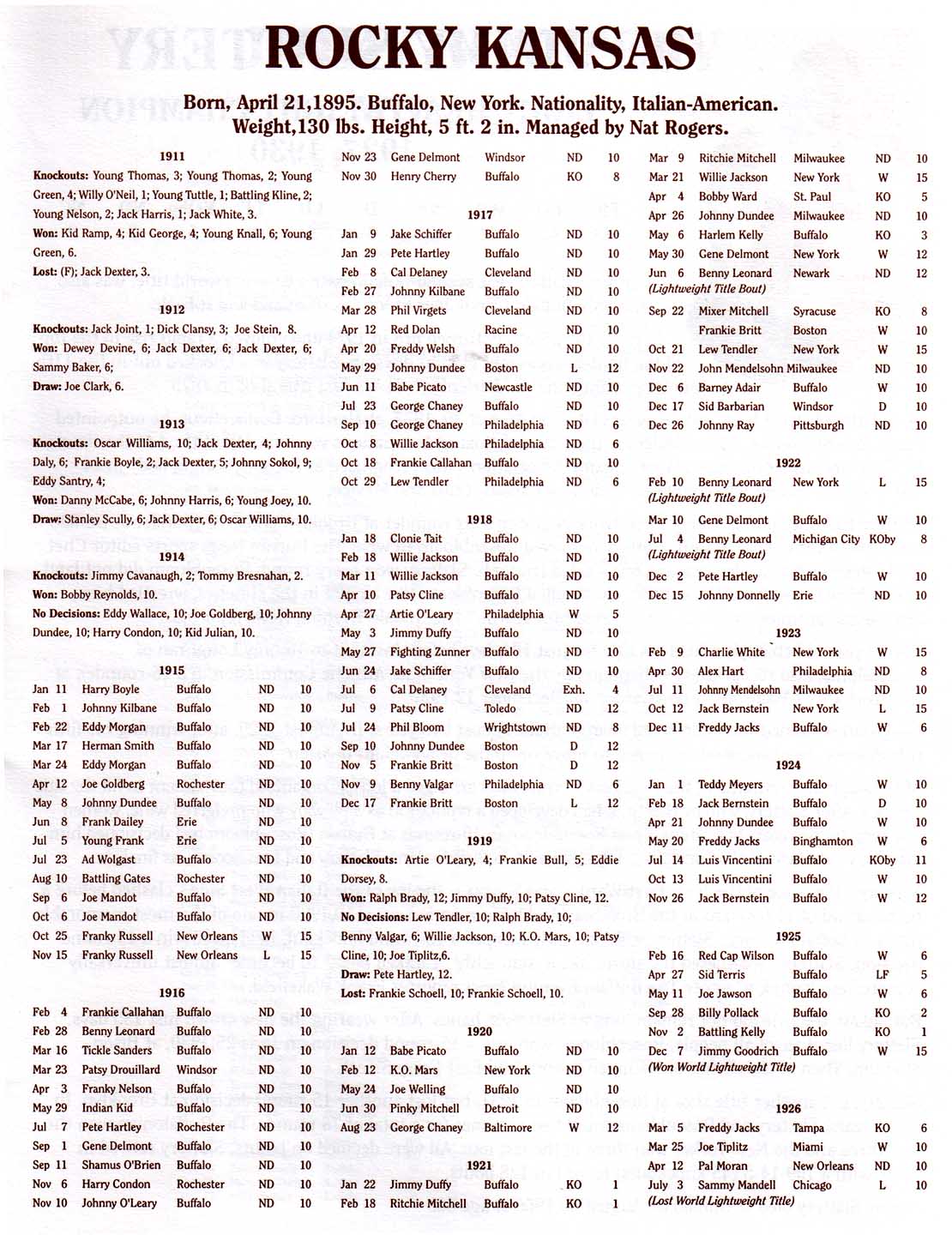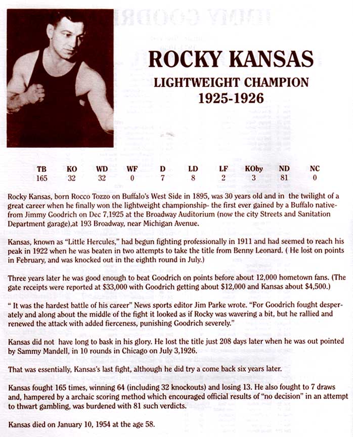 Boxing in Buffalo, NY - Table of Contents ............... Boxing Insider Buffalo Veterans Boxers Association 34th Annual Dinner Banquet Program, May 10, 1997 Rocky Kansas 1895-1954