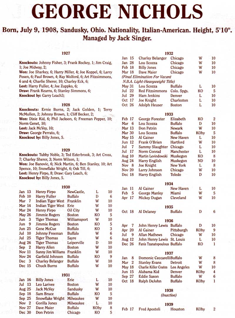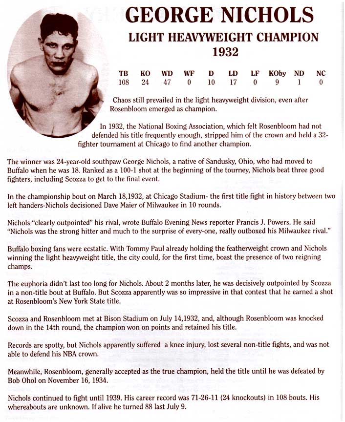 Boxing in Buffalo, NY - Table of Contents ............... Boxing Insider Buffalo Veterans Boxers Association 34th Annual Dinner Banquet Program, May 10, 1997 George Nichols 1907-1986