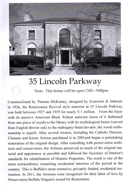 Brochure entries from the 2011 Candlelight House Tour during The National Trust for Historic Preservation Conference in Buffalo. Sponsored by Preservation Buffalo Niagara.