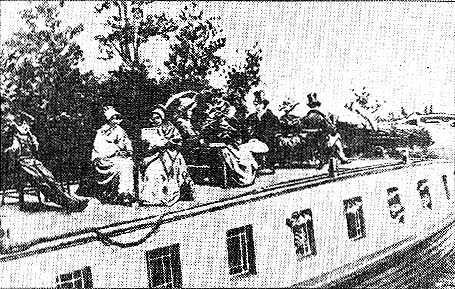 THE ERIE CANAL was, after all, an artificial waterway. It was, in fact, a ditch 40 feet wide at the top, 28 feet wide at the bottom, and a mere 4 feet deep. Three hundred and fifty miles long, it contained 83 locks 90 feet long, and 15 feet wide including the magnificent flight of twin fives at Lockport, five locks for westbound and five for eastbound traffic, and the flight of 16 to raise boats from the Hudson to the Mohawk at Albany.
