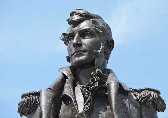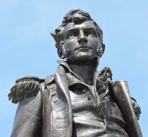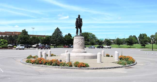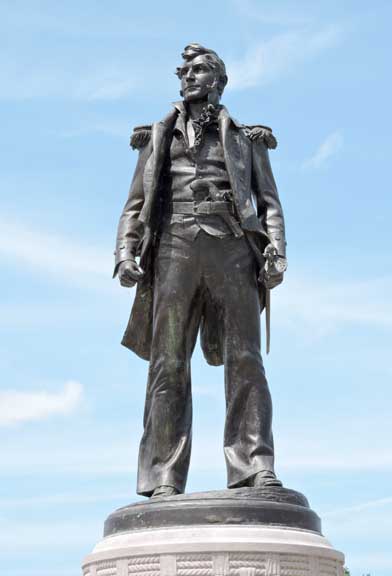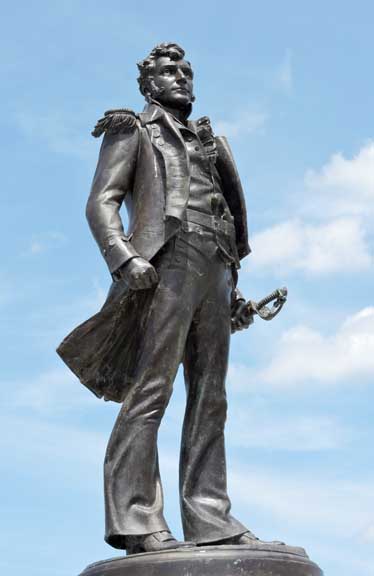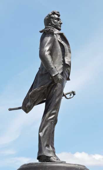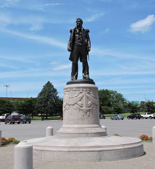 Commodore Perry defeated the British naval fleet at the Battle of Lake Erie during the War of 1812. This statue was erected by the State of New York Perry Victory Centennial Committee, and was dedicated at the annual reunion of the 100th New York Veterans Association.