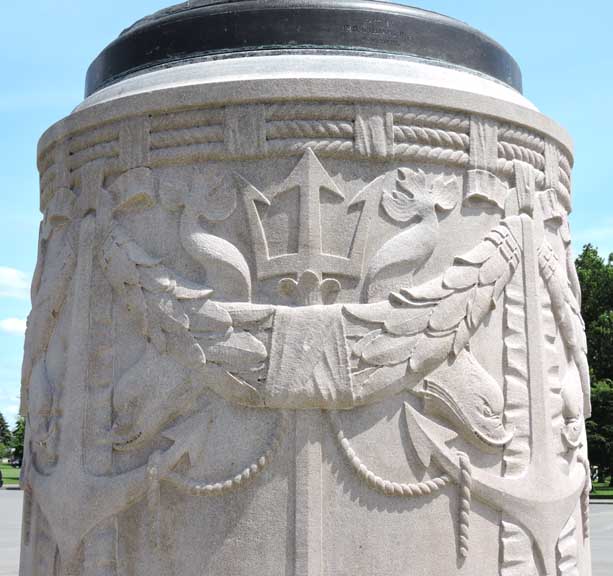 Trident with flanking dolphins ... Laurel leaf wreath between anchors