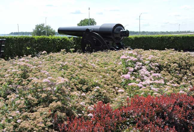Buffalo’s Parrott rifles are 100-pound naval versions. Various sizes were cast but the 100-pounders could fire projectiles weighing up to 100 pounds as far as 7,800 yards and needed a crew of 17 sailors to load and fire them. By the 1870s, this cannon model was already obsolete since it was made for wooden warships and would not fit the new iron fleet.