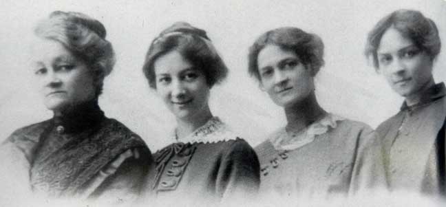 ![]() From left: Frances Daniel Miller (wife of Edward B. Miller) and daughters: Grace (married Daniel B. Niederlander), Ruth, Sue. Photo courtesy of Betty Niederlander Murphy. |