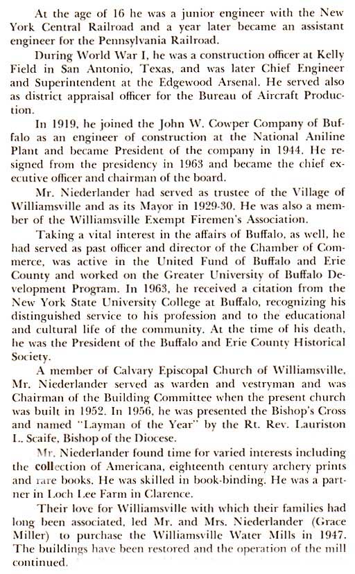 One of the founders of the Williamsville Historical Society. Served as the only president until his death in 1964. |