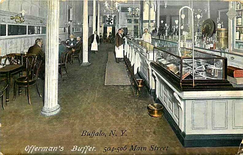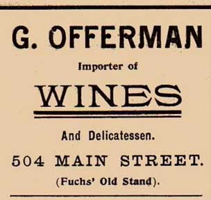 Gottfried Offermann Reprinted from "Buffalo and Its German Community Copyright 1912 by Jacob E. Mueller ![]() Anyone who's looking for a genuine German bistro where you'll find lots of prominent German citizens must go to Offermann's. If you're looking for true delicatessen items of fine quality, go to Offermann's. Incidentally, Mr. Gottfried Offermann is the head of a double business counted among the best in Buffalo. Mr. Offerman, a German through and through, first saw the light of the world on April 12, 1846 in the splendid city of Cologne on the Rhine. He was the son of master butcher Mathias Offermann and his wife Katharina, nee Frenger. He attended the elementary and public schools in his district. He apprenticed with his father and learned the trade from the ground up. When his apprenticeship ended and he was 16 years old, the enterprising young man decided to seek his fortune in America. He landed in New York in the Summer of 1862. He did not arrive in a peaceful land. The Civil War had broken out and the business climate was depressed. Gottfried Offernamn, who was unusually strong and powerful for his age, didn't think about it long before he decided to fight on the side of the Union for the ideal of true freedom and humanity. He volunteered for service. He was at the battles of Chanclersville [sic], Gettysburg, and Lookout Mountain. He was also involved in smaller squirmishes. He distinguished himself with his bravery. When the war ended in 1865 and he was honorably discharged he came to Buffalo. He's been in this city ever since. Mr. Offermann first found work with Richard Bullymore. He became self-employed in 1870 with a small butcher shop at the corner of Ash and Sycamore Streets. He had success with this business until 1878. After that for a time he was employed as a cattle dealer. He was foreman in Christian Klinck's slaughterhouse. He was there until 1891 when he took over the position of manager in the slaughterhouse of Danahy Co. He stayed there until 1899. Mr. Offermann bought the delicatessen next to the inn belonging to the Fuchs brothers at 504 Main Street. The business has prospered and grown. Mr. Offermann is a prominent Elk, a member of the Buffalo Orpheus, the Teutonia Liederkranz, the Harugari Frohsinn, and other associations like the Butchers Association No. 1. He is not only a respected citizen and businessman. He has played an important role in local politics. He was Deputy Streets Commissioner under Mayor Diehl for 4 years. On October 23, 1865 Mr. Offermann married Miss Genofeva Barth. The happy marriage was blessed with 7 children, of whom 4 have died. The ones still living are Mr. Frank Offermann, Mrs. Lina Schunk, and Mrs. Anna Morbusch." |