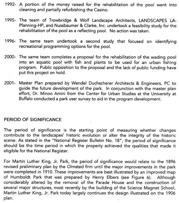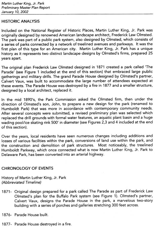 Historic Analysis - Martin Luther King, Jr. Park Preliminary Master Plan Report January 10, 2002 Prepared by Wendel Duchscherer Architects & Engineers