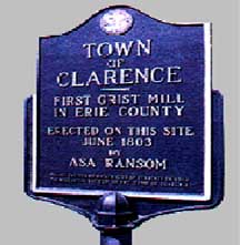 Asa Ransom accepted a lot at the foot of the east hill in what is now Clarence and built a tavern there. The little settlement grew rapidly and was called Pine Grove, then Ransomville and later Clarence Hollow. Ellicott established a land office there for a short time. He moved it to Batavia in 1801 and it became the main office of the Holland Land Company.