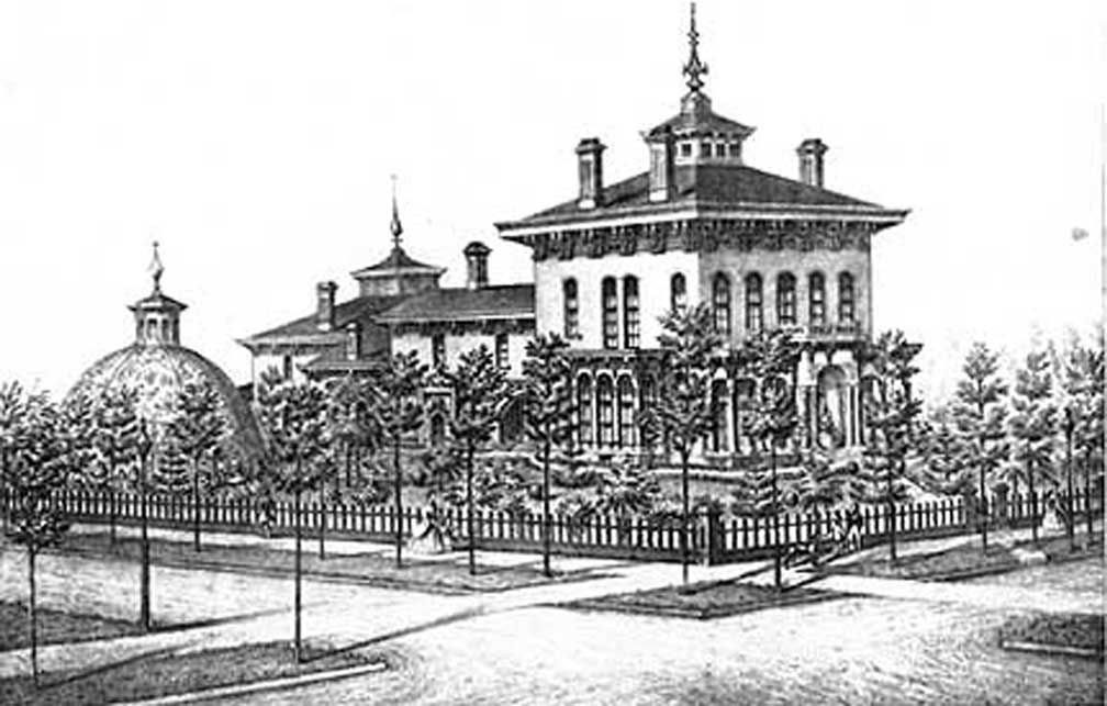 In 1856 he bought "a large tract of land between what is now North and Summer Streets, facing and extending west from Delaware Avenue," upon which he built the red-brick mansion into which he moved in 1856. The barn matched the main house and the glass conservatory on North was the most unique structure ever seen by most Buffalonians.