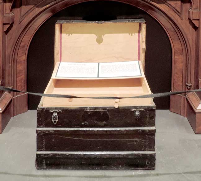 Note trunk below fireplace