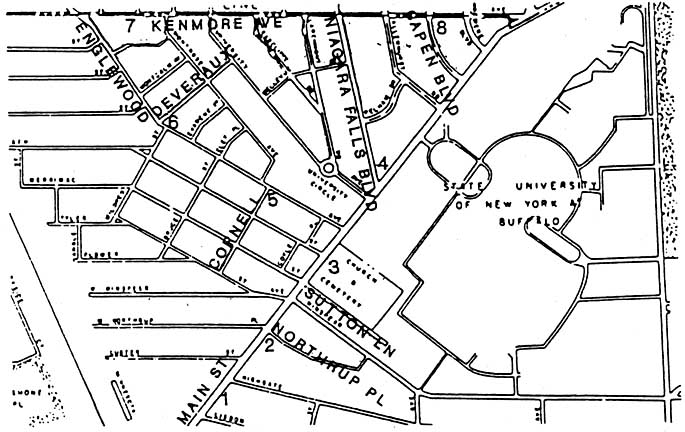 University Park: Five years-later, Anthony J. Huck, owner of farmland on the west side of Main Street developed the University Park area. On land his family had originally purchased from the Holland Land Company, he constructed homes priced from $3500 to $7000.